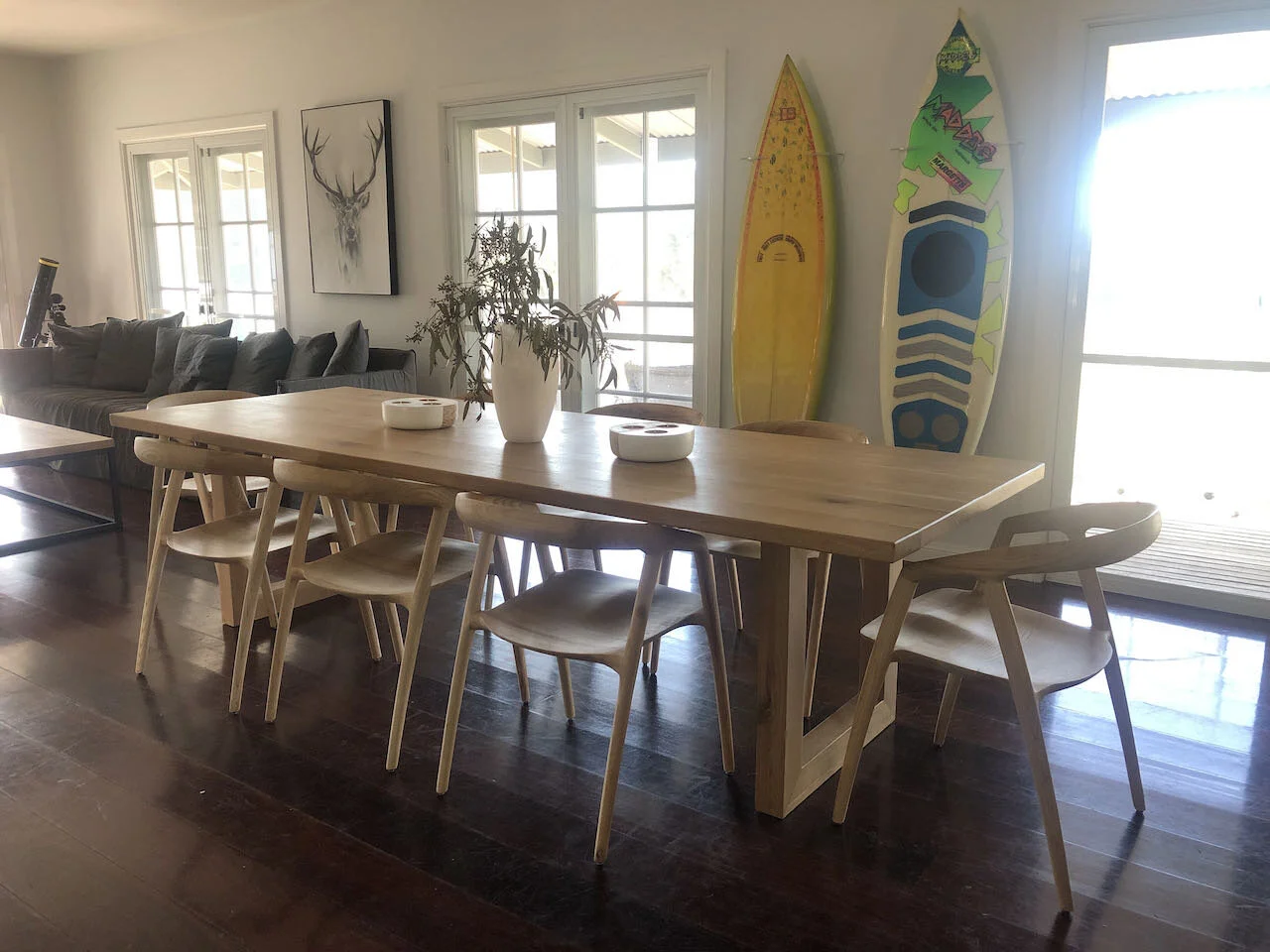 Neranie House is a modern & light filled country home set on 73 acres of farm land close to the white sands of Seal Rocks beach and Myall Lakes.