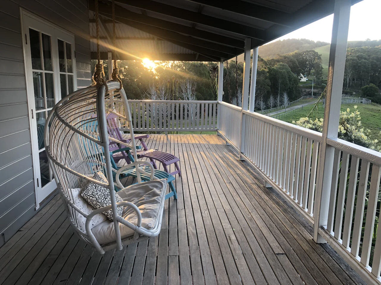 The homestead has been recently refurnished & painted inside and out to ensure guests have a comfortable & revitalising stay. Unwind with a drink on the Byron Bay Hanging Chair or Sofa on the large deck or relax inside on one of the MCM House ‘Joe’ sofas. Cook up a storm in our well stocked kitchen and sit comfortably around the large MCM House dining table and chairs or at our outdoor dining table. We have a full sized cot plus a travel cot and portable change table for those travelling with infants. Neranie House is the perfect getaway for families & groups.